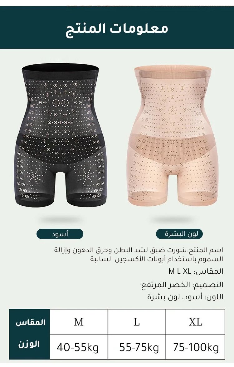 شورت ضيق لشد البطن وحرق الدهون وإزالة السموم باستخدام أيونات الأكسجين السالبة