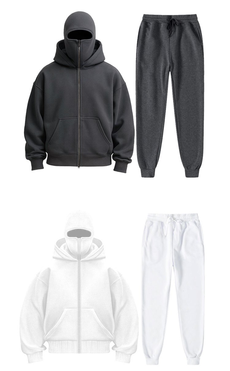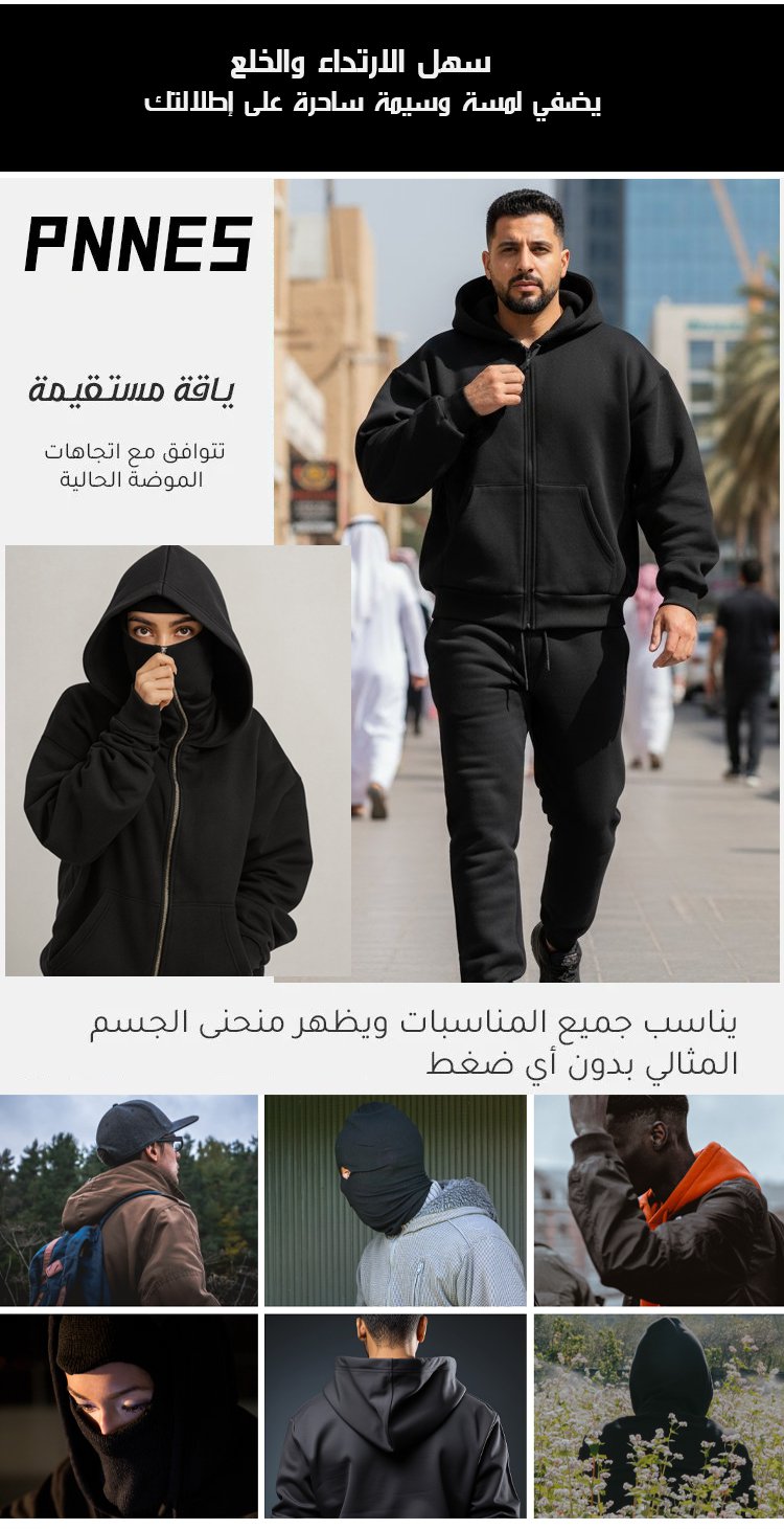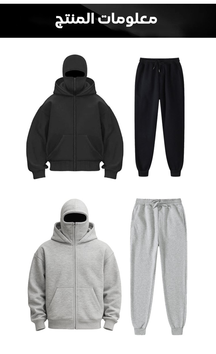 مجموعة سترة رياضية بسحاب وغطاء رأس مزدوج وبنطال رياضي للرجال والنساء